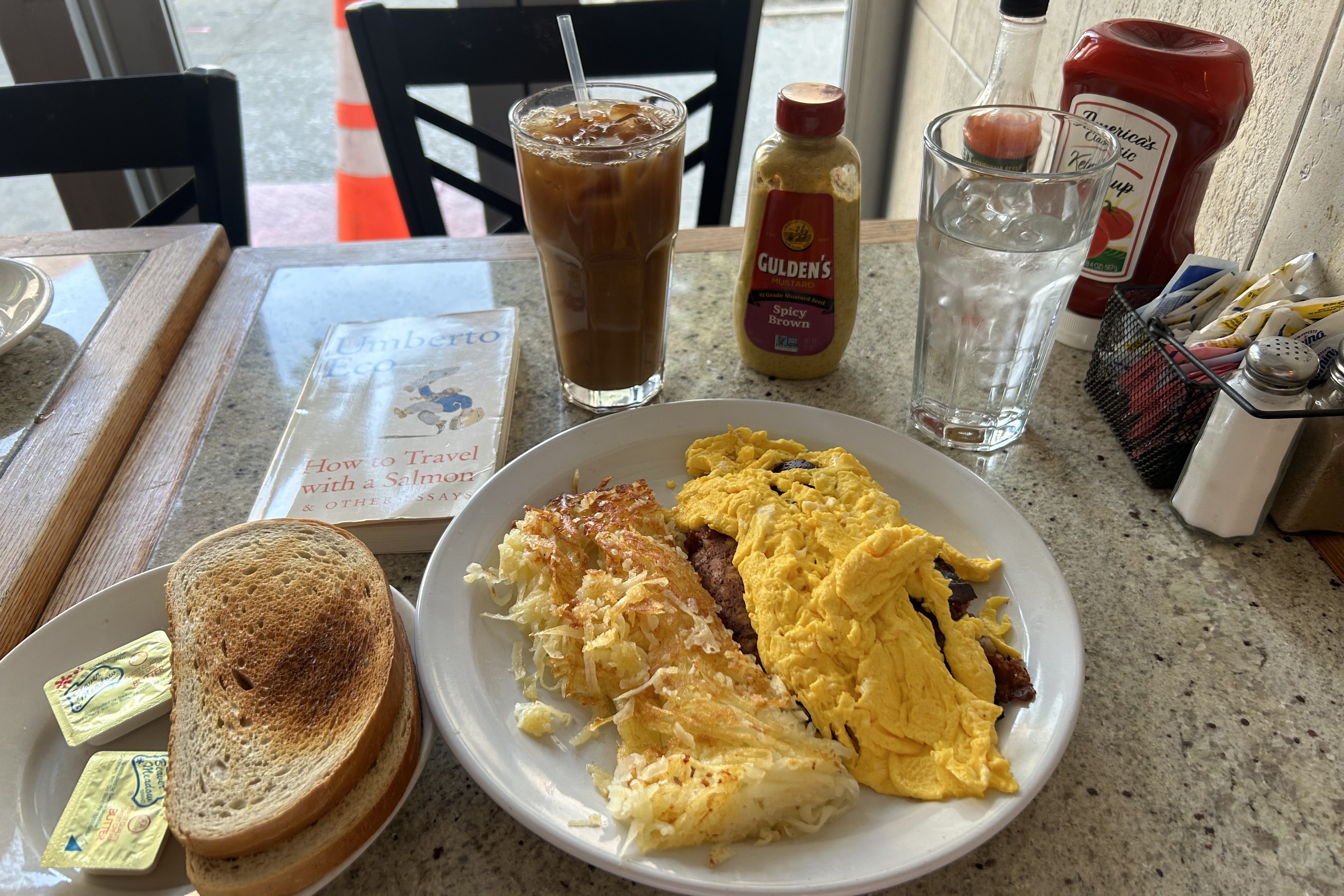 The diner hired a new waiter a couple months ago. He always comes and talks to me about whatever issue of the New Yorker I have brought with me. He incorrectly tells me the magazine used to be a monthly. I only gently correct him, and he asks to connect with me on social media. I wonder what he’ll think of my story posts. He’s a smart guy studying semiotics somewhere. I imagine him and I will have pleasant conversations for perpetuity while I eat corned beef hash. Maybe it’ll be with someone else taking a passive interest in what I’m reading. To pass the time. Another half century of this too.